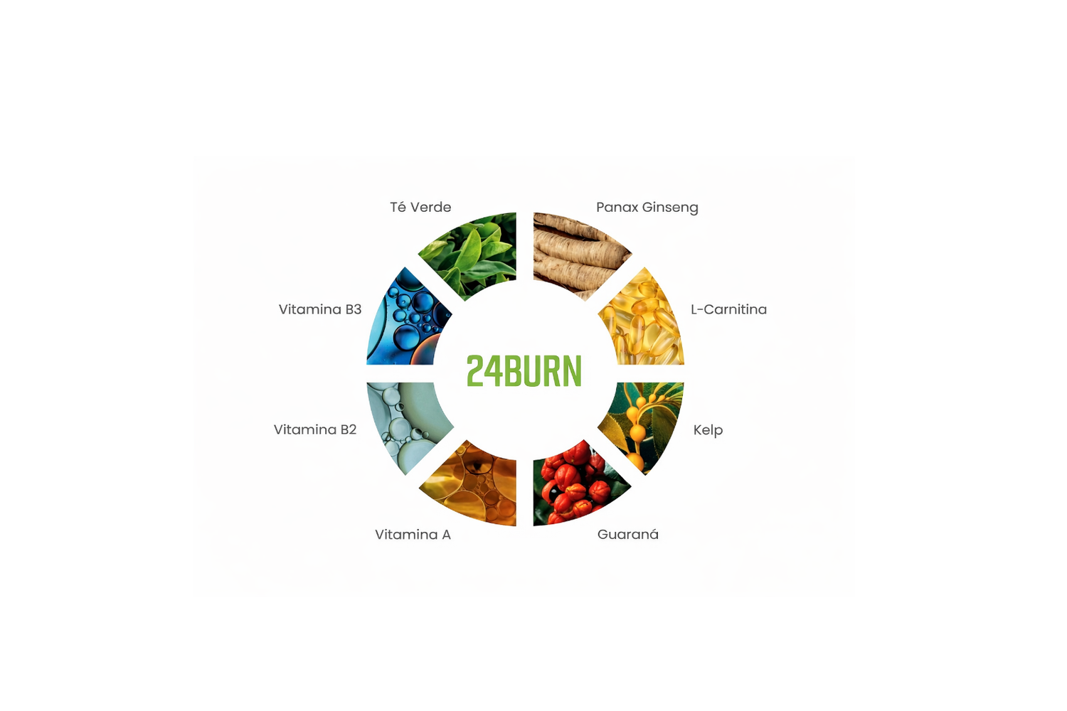 24 Burn combina ingredientes naturales que trabajan en conjunto para apoyar tu energía, metabolismo y control del apetito durante el día.